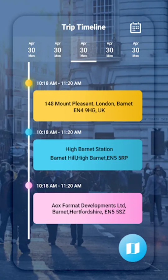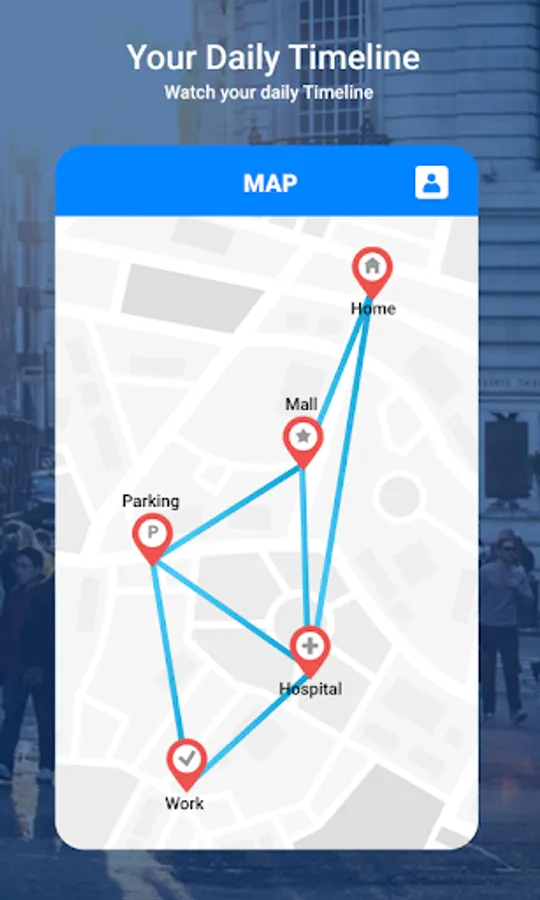 - See your timeline displayed on Google Map with tract from start to end connection all the locations you have visited.