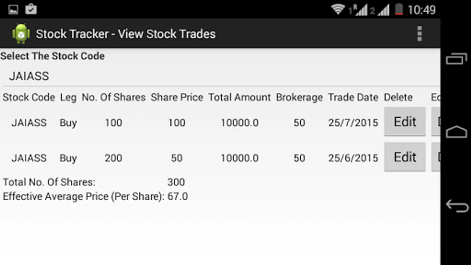 Stock Tracker has been designed to track your stock holdings smartly. This application helps you to track your stock portfolio effectively. You can calculate remaining no of shares and effective average price per share.