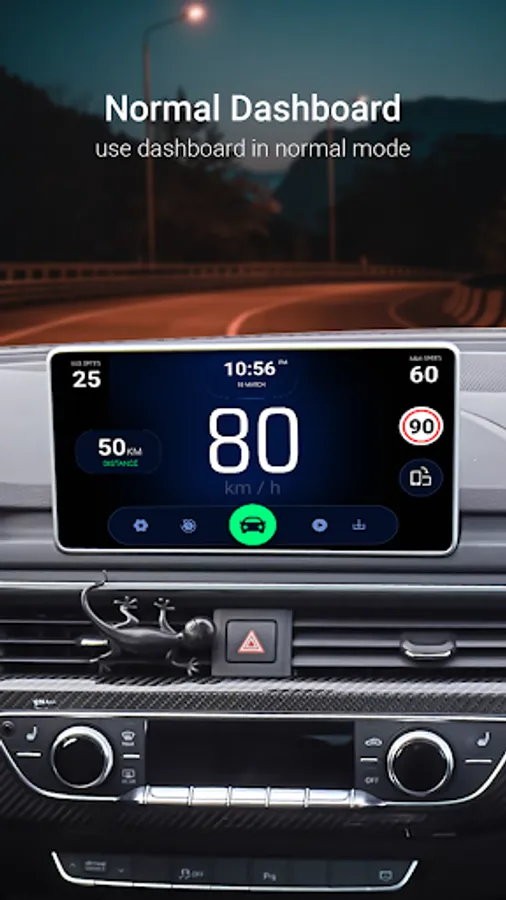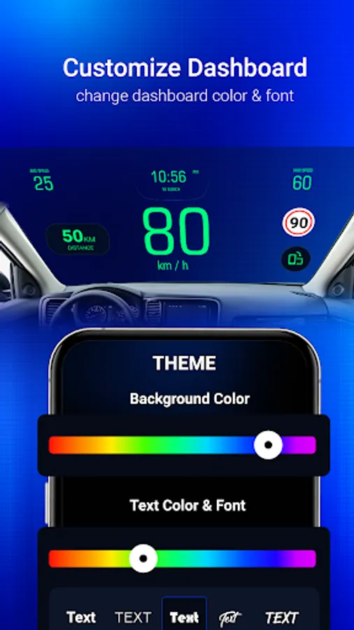 This app has car dashboard speedometer that comes with amazing speedometer themes and customizable options. All you need to do is run this app and put your phone on the car dashboard, the reflection of your phone will show you the speedometer on your front car glass. Also get car speed alerts, monitor your car speed and record your vehicle mileage.