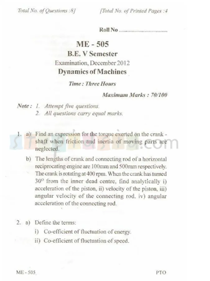 Questions Papers for the following branches are currently available: