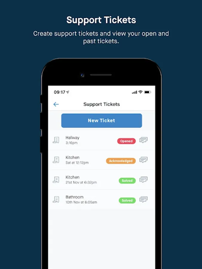 You can also see the payment status of all your rent instalments, with useful reminders sent to you before each instalment is due. If you need to discuss payment terms or any other issues with your property manager, just open up the app and live-chat with your property manager. You can even report maintenance issues with photos and check on the status of those tickets.
