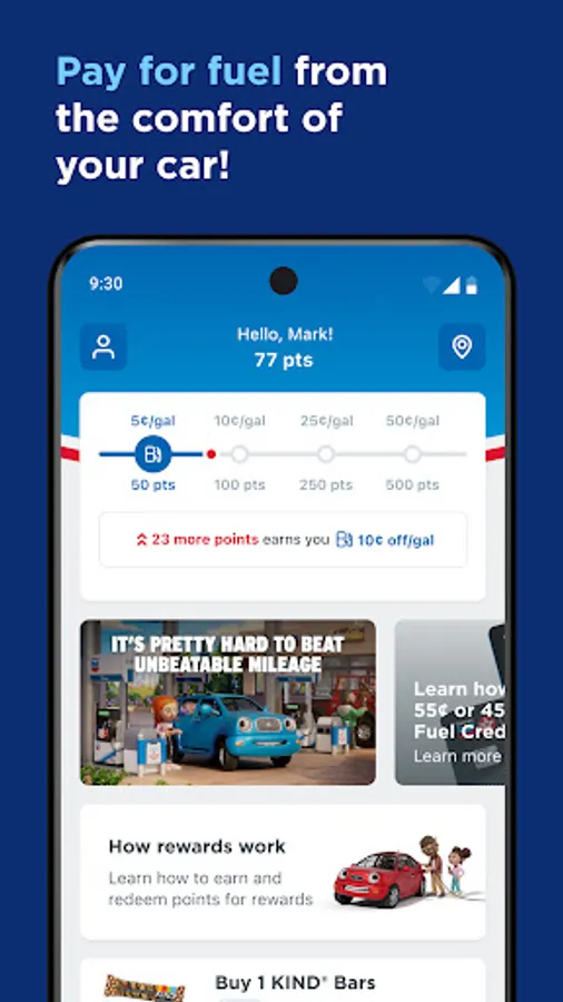 • Redeem rewards for fuel discounts. Earn points with every purchase for up to 50¢ off per gallon