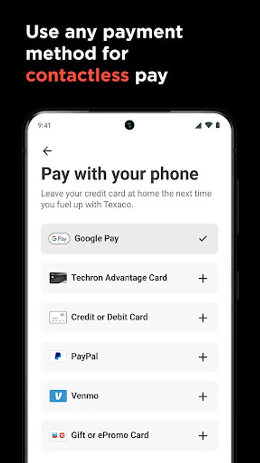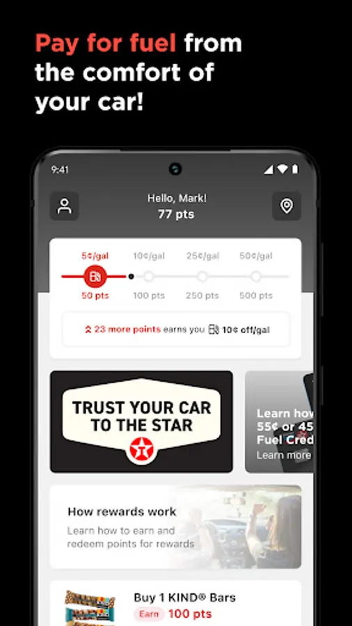 Use the Texaco app to pay for fuel from the comfort of your driver’s seat for a fast and simple experience at the pump! Now, receive additional benefits by signing up for the newest and exciting Chevron Texaco Rewards (CTR) program that rewards members up to 50¢ off per gallon by earning points on fuel and qualifying in-store purchases. Use the phone app to check the station finder to find a participating Chevron or Texaco station near you by filtering “Texaco Rewards”!