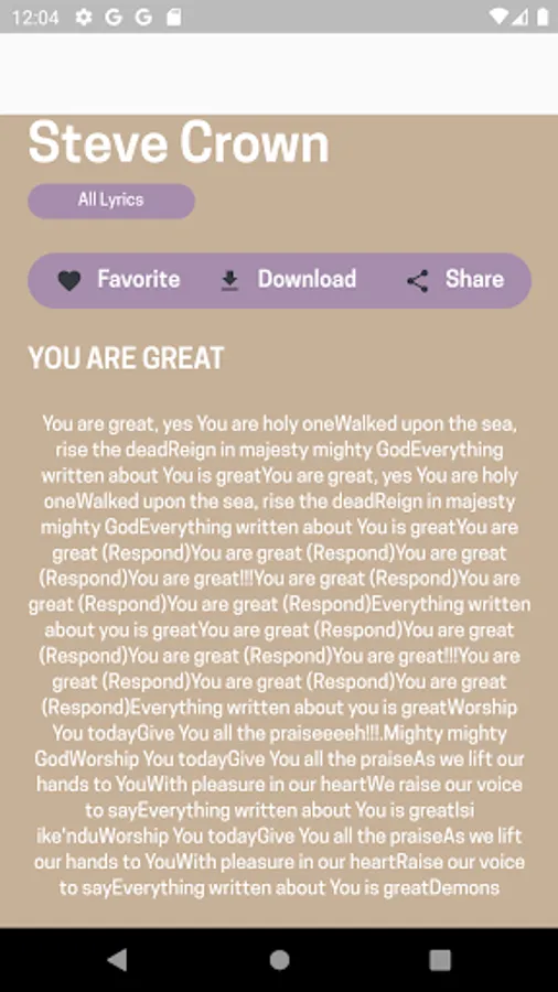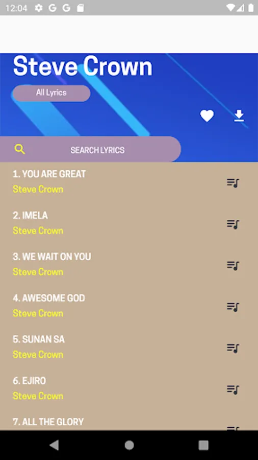 Steve Crown Songs lyrics makes it easier for users to sing by using the lyrics in it. Make sure the internet connection is on to use this application to read the lyrics