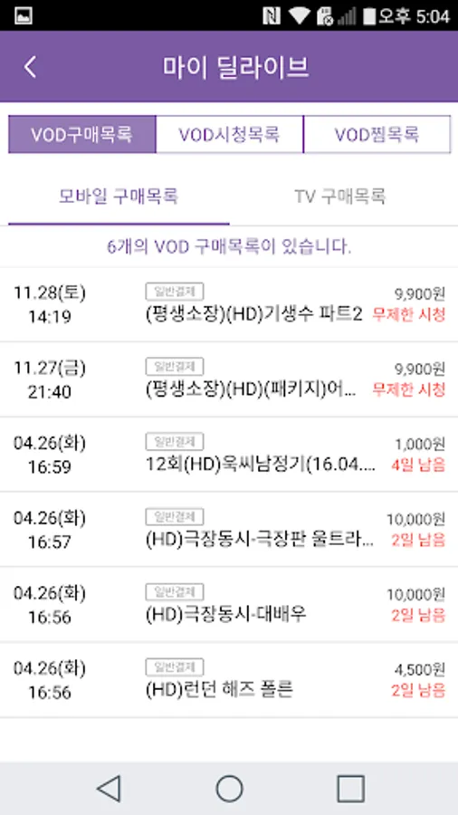 • eseodeun TV with the purchase of a mobile-only VOD, mobile eseodeun possible to watch without additional charges