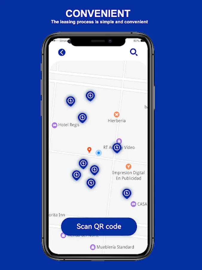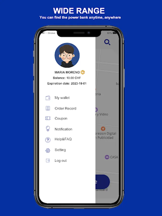 Power bank rental service. Charge your device on-the-way and return in any station.