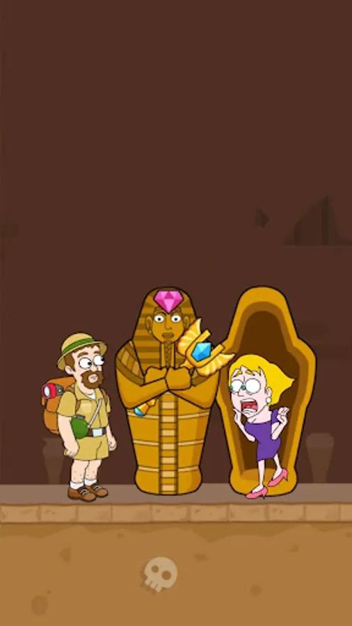 Each level presents you with multiple choices - pull the correct pins to proceed. Wrong answers will result in painful but funny outcomes for our man!