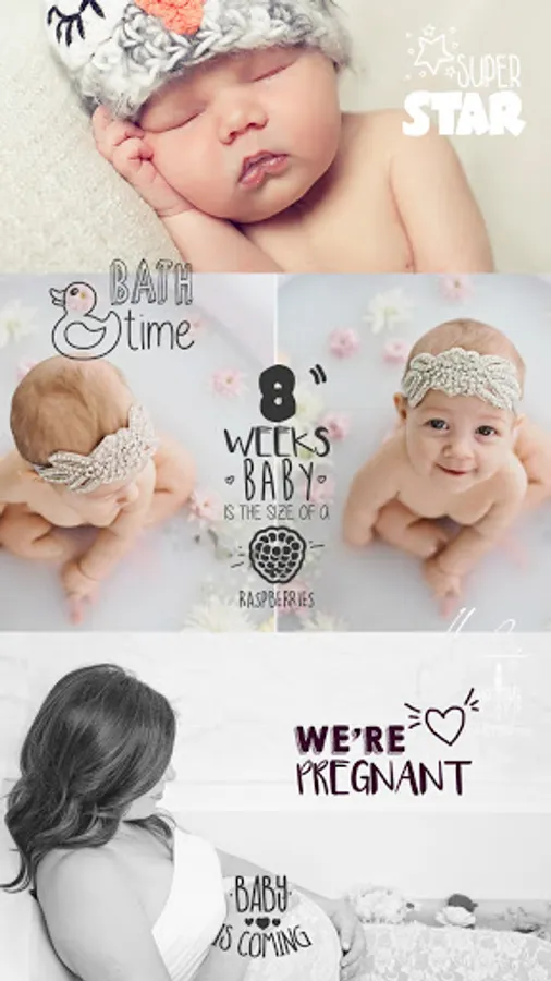 Baby Pics is treasure to your precious pregnancy and baby milestone pictures by beautifully stickers and multiple personalized text.