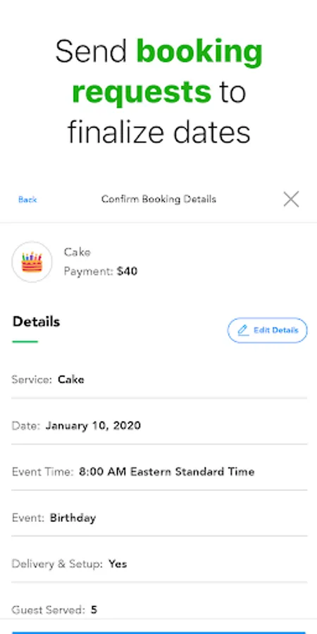 The process is really easy. Nearby customers request an event service they need and fill out details. We send you details of these requests for free. These details will allow you to figure out whether this is a service you can provide or not. If you can provide the service, send a quote and personalized message to the customer. We instantly connect you into a chat session with the customer to begin discussing and finalizing details for the service.