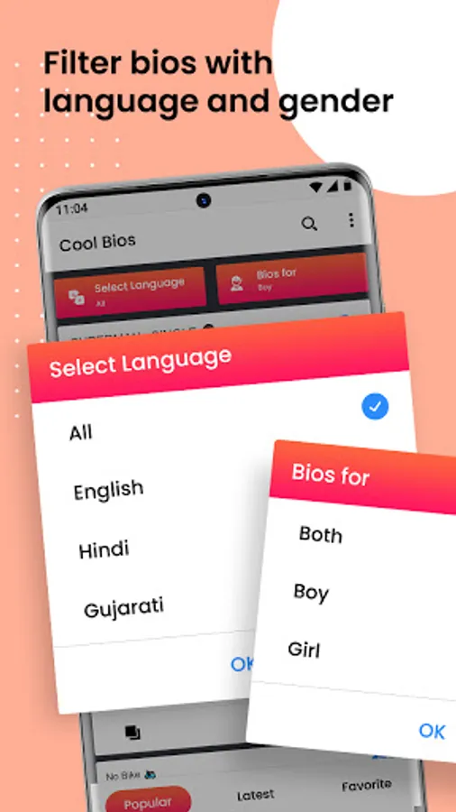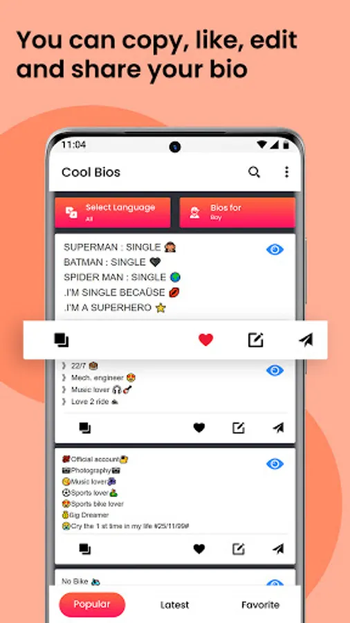 Download the app and, get your choice Bios and get instant attraction on your social media profile to gather more followers.