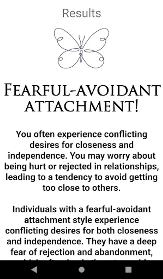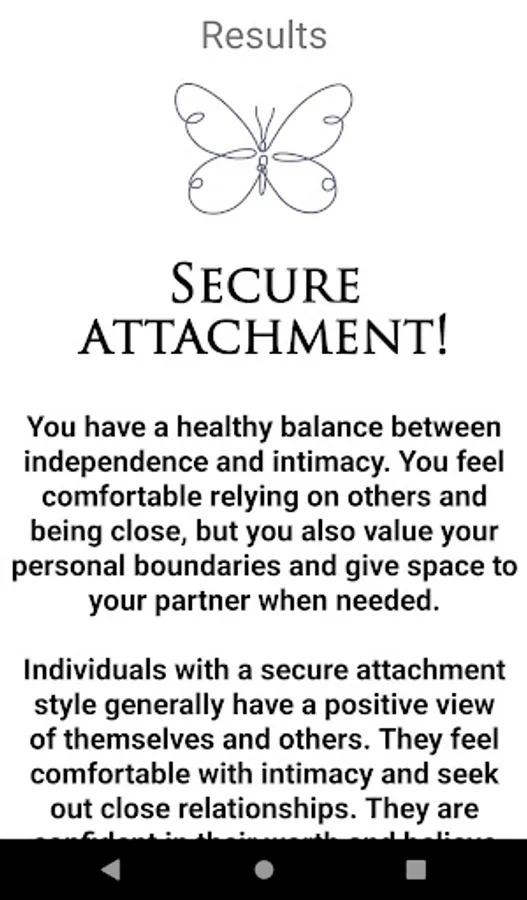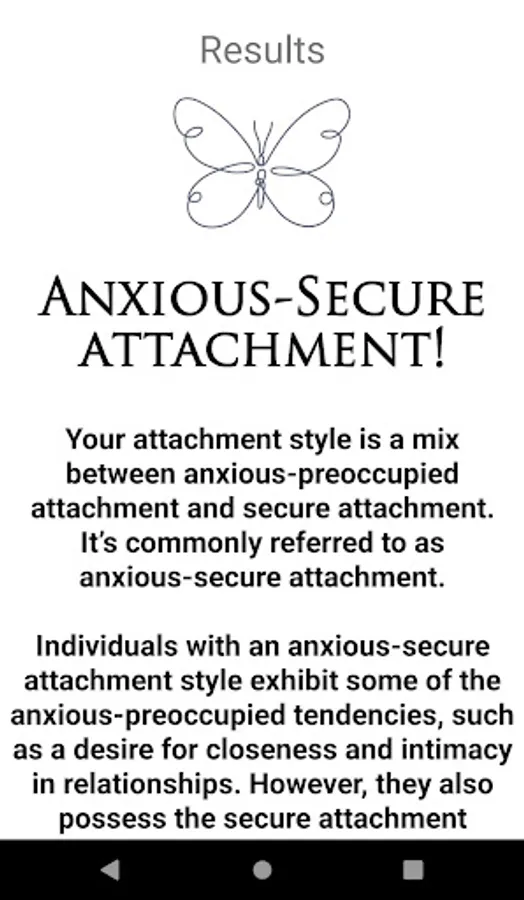 Attachment Style Quiz is your go-to app for understanding and improving your attachment style. Whether you're single, in a relationship, or looking to enhance your emotional well-being, this app empowers you to foster healthier connections and experience more fulfilling relationships. Download Attachment Style Quiz today and embark on a transformative journey of self-discovery!