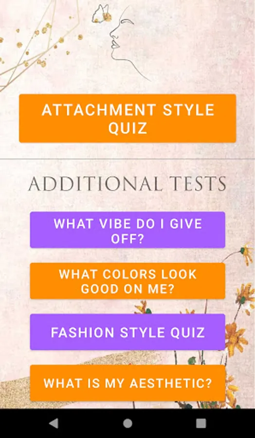 Attachment Style Quiz is a mobile app designed to help you gain a deeper understanding of your attachment style and its impact on your relationships. Explore your attachment patterns, enhance self-awareness, and unlock valuable insights into your emotional connections with others.