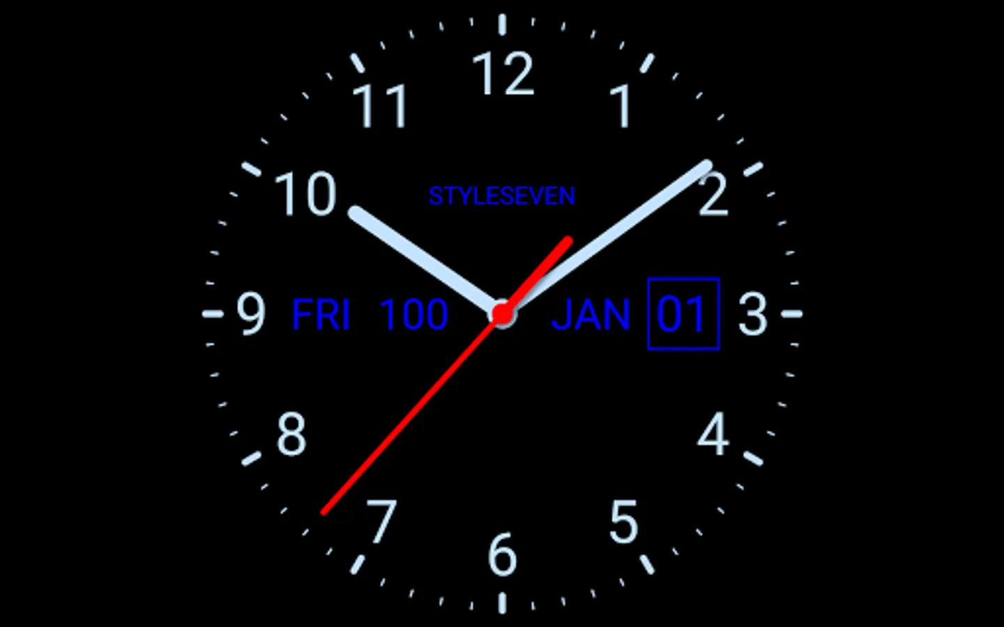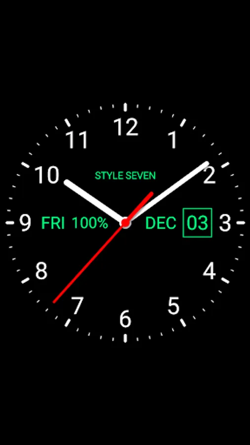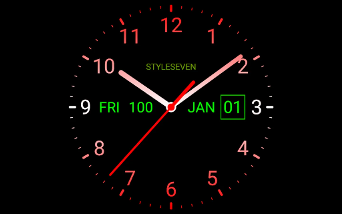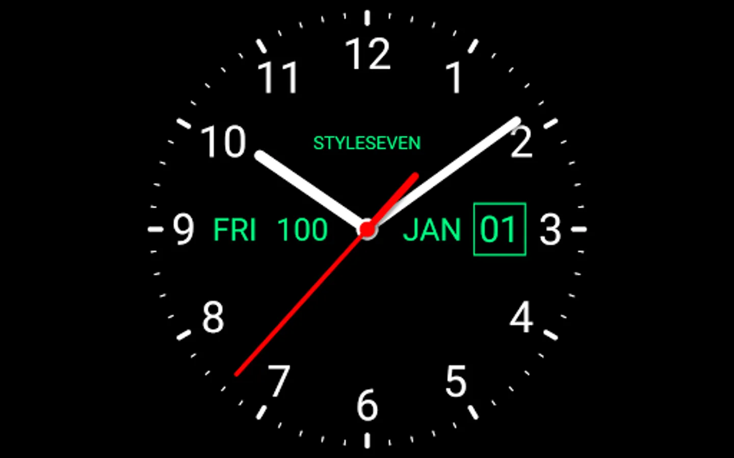 The analog clock also shows: the current date, day of the week, month and battery charge (except for the app widget).
