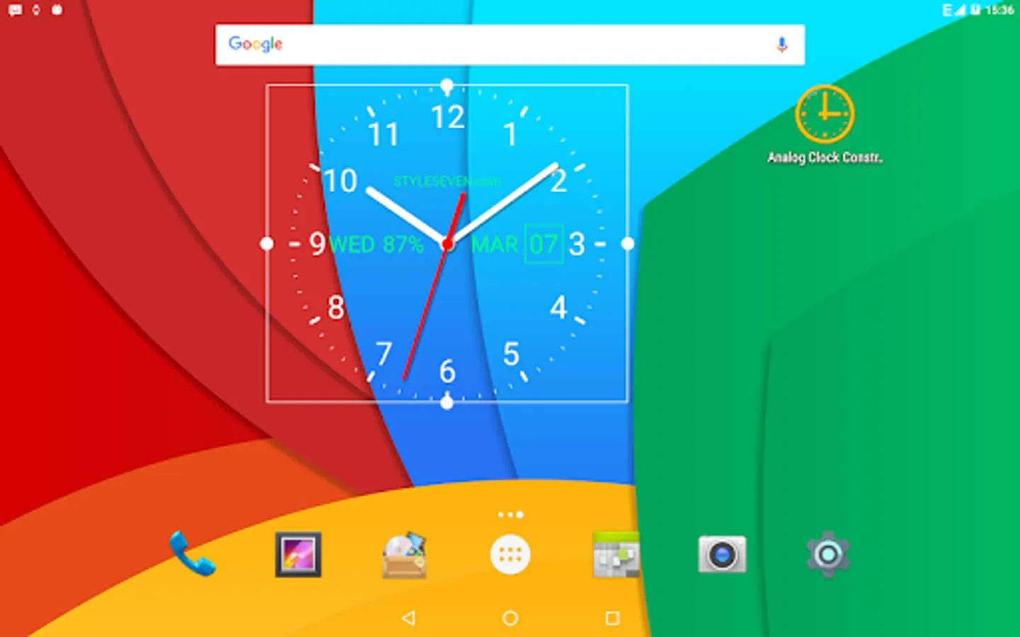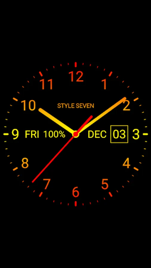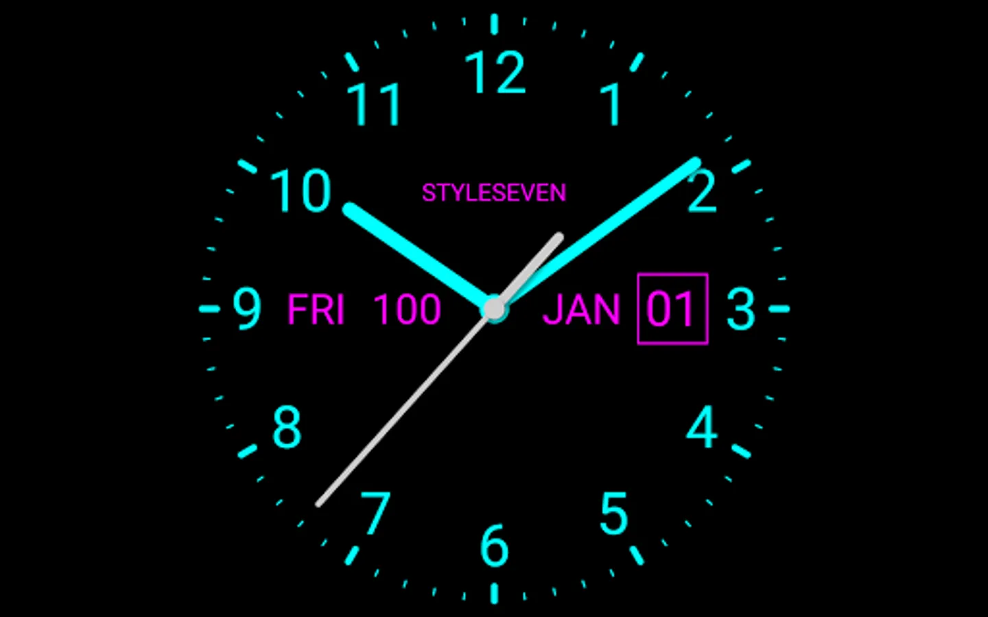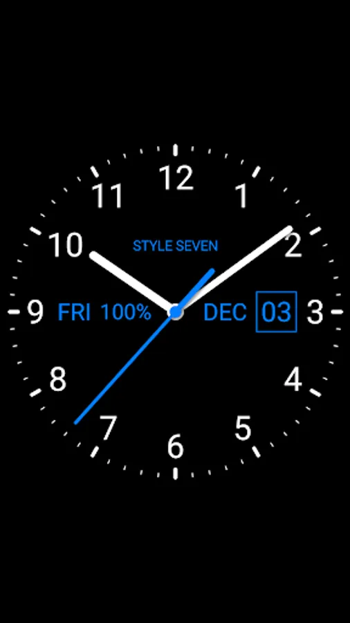 The analog clock also shows: the current date, day of the week, month and battery charge (except for the app widget).