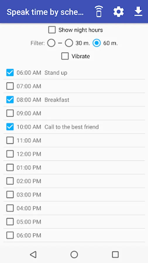 Use the list of reminders and the clock will talk the current time and any text according to the schedule, which is very convenient for work and leisure.
