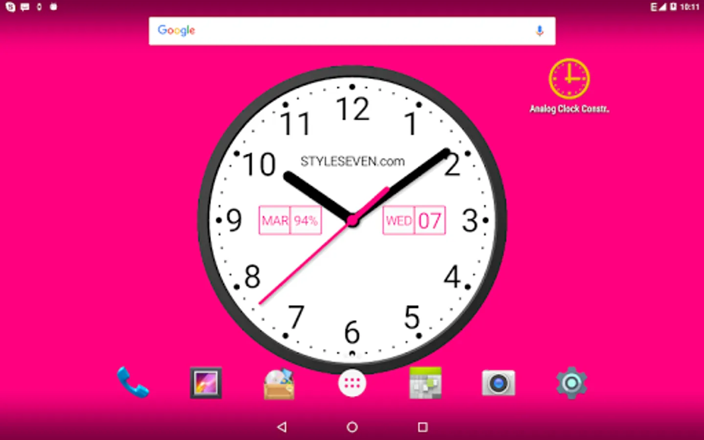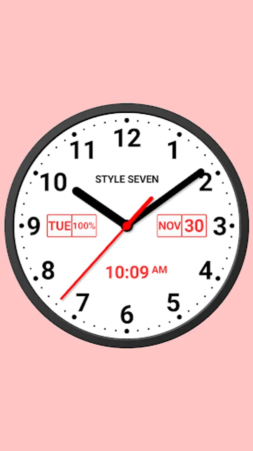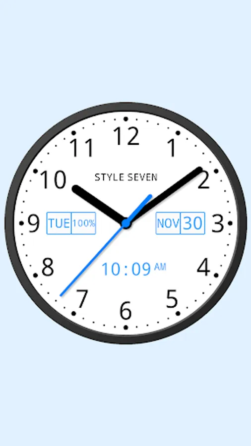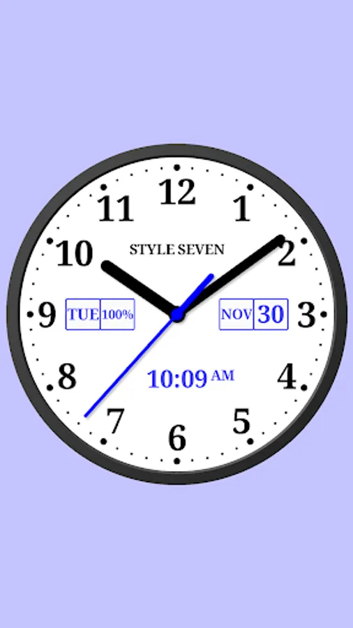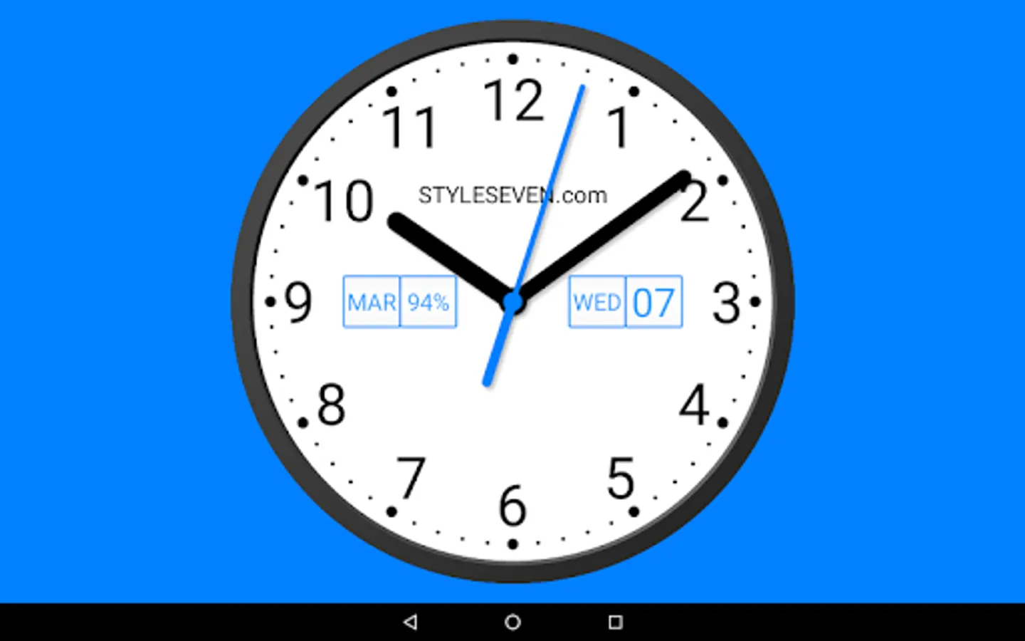 This is a classic light analog clock for display the current time. The analog clock also displays the current date, month, day of the week, battery charge (except app widget) and digital clock. There are four fixed position on the dial where you can set date, month, day of the week and battery charge in any order or hide them as well.