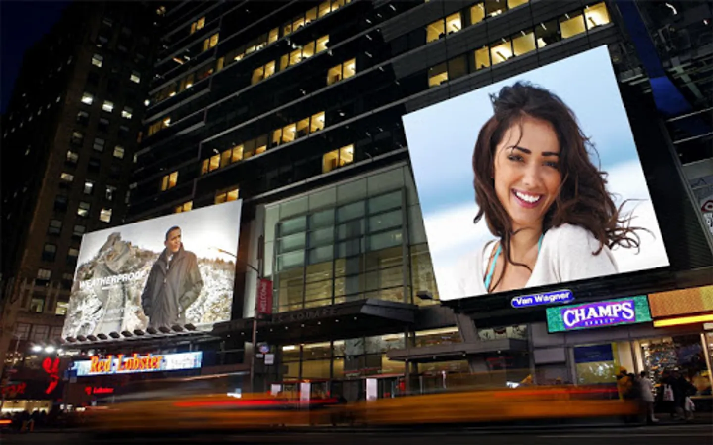 Select your photo and place it on the billboards of the most emblematic places. Just choose your favorite picture and the desired frame to create in seconds a original souvenir.