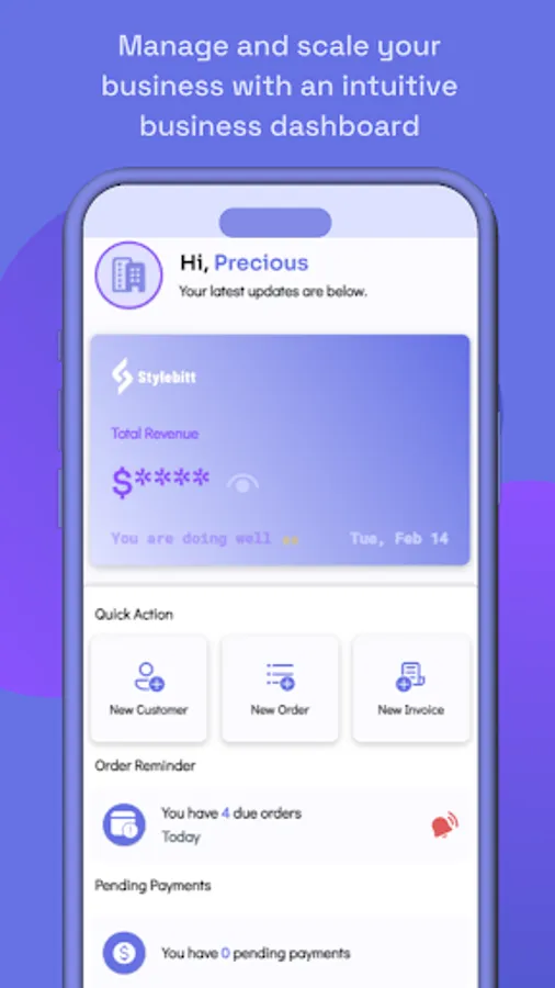 Business snapshot: Stylebitt provides a real-time snapshot of how your fashion business is doing. The homepage displays your current order status, total revenue, and important reminders. With Stylebitt, you can access all the essential information about your business in one place, saving you time and energy.