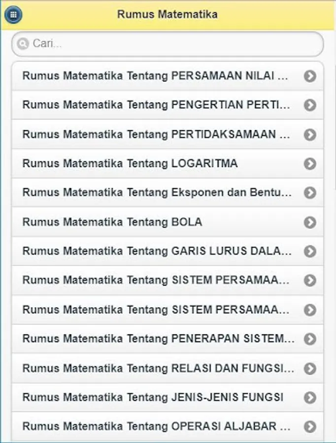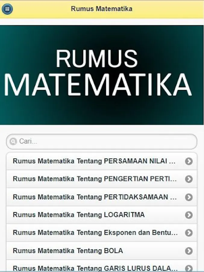 Complete mathematical formula is an offline android application that provides various mathematical formulas. This application is complete with mathematical formulas because this application contains all the formulas to be learned by students in school, all formulas are in this application.