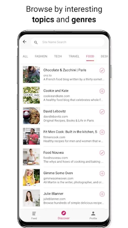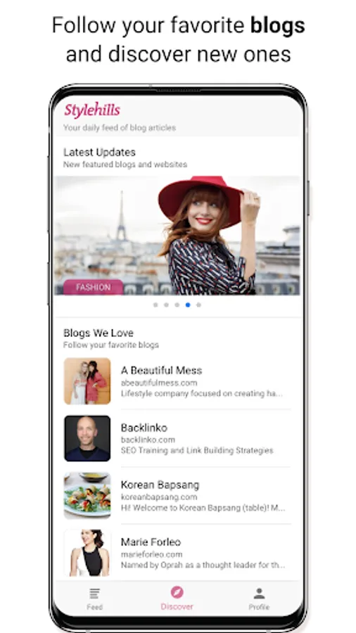 If you are looking for inspiration, you can select the discover tab and browse by popular topics. We help you discover the best blogs and sites for fashion, travel, food, design, tech, growth, learning, money, lifestyle, and more.