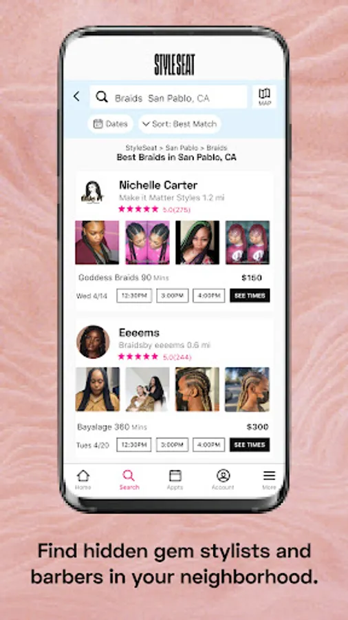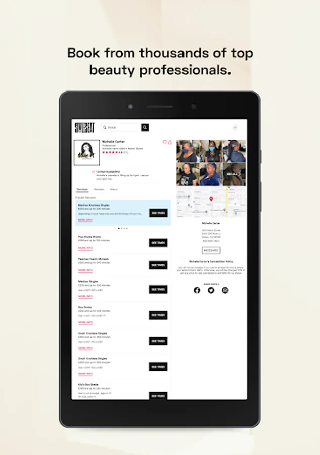 Clients can easily discover and book beauty & barber appointments online. Whether you’re looking for pedicures, lash extensions, weaves, or new hairstyles, StyleSeat offers a convenient way to browse photos and reviews, get important pricing information, and book appointments at a time that works for you straight from your professional's calendar.