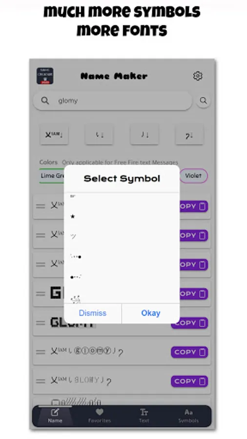Find the best Nicknames symbols and tags for anyone using Nickname Generator for Fire Free.