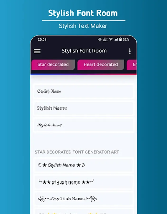 There are lot's of stylish fonts available in TextRoom app, It's free and easy to use.