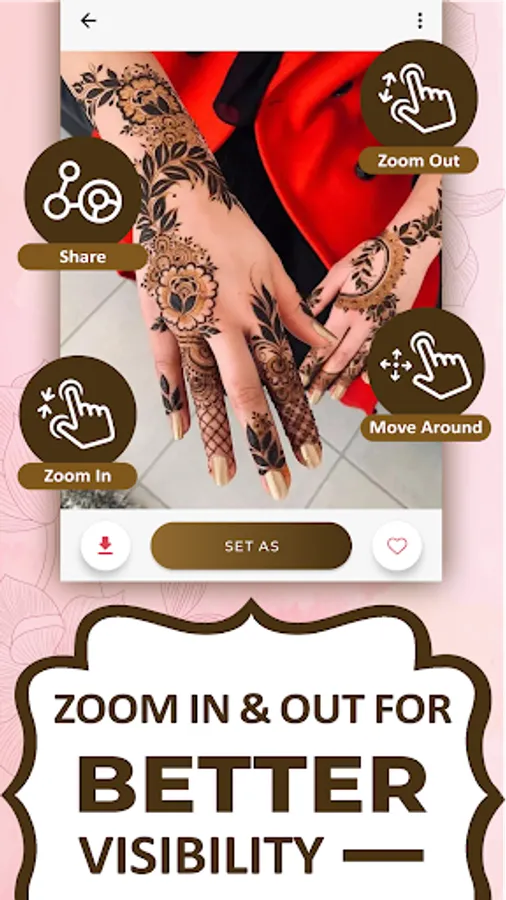 You can also zoom in on designs to see the details and save your favorite mehendi design for future reference.