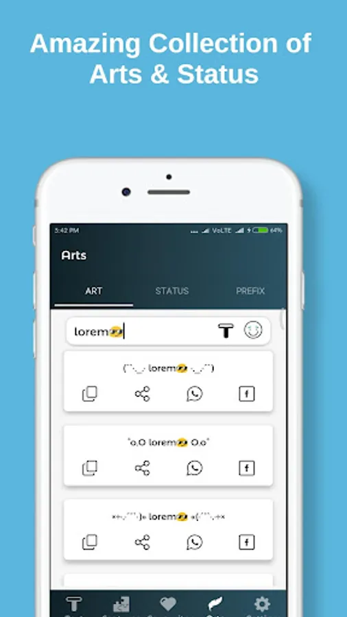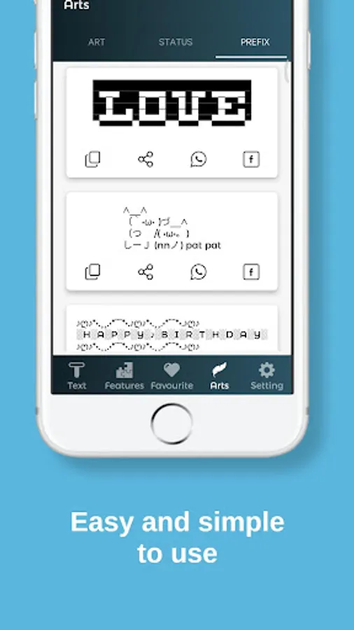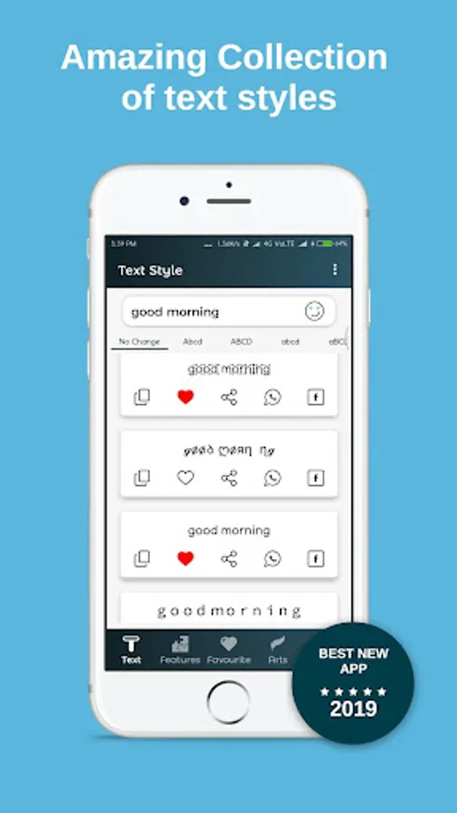 Quickly copy, share, favorite or swipe left to copy and swipe right to edit Stylish Text.