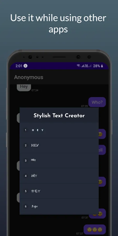 Generate Stylish Text on the fly while using other apps with our Floating Bubble