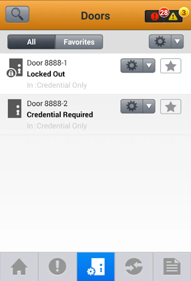 • Ability to operate doors by remotely issuing unlock, lock, lock out, and reinstate commands