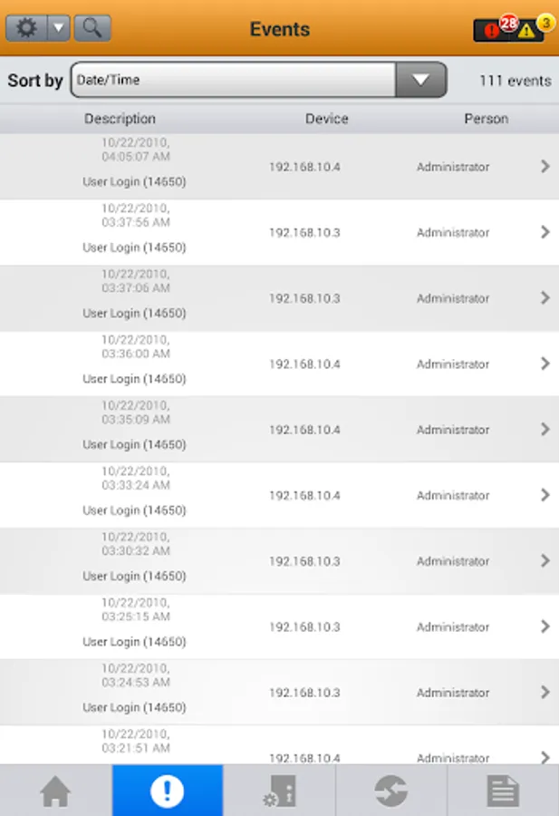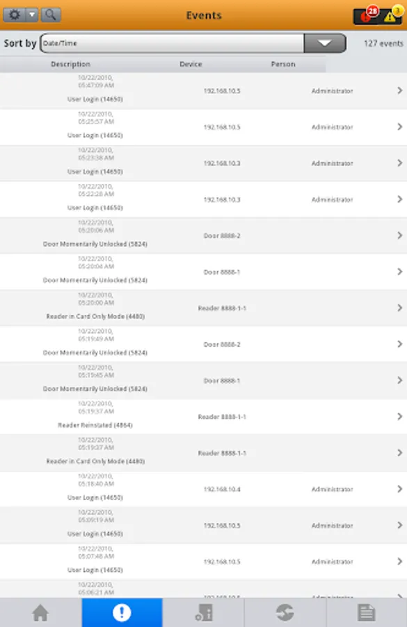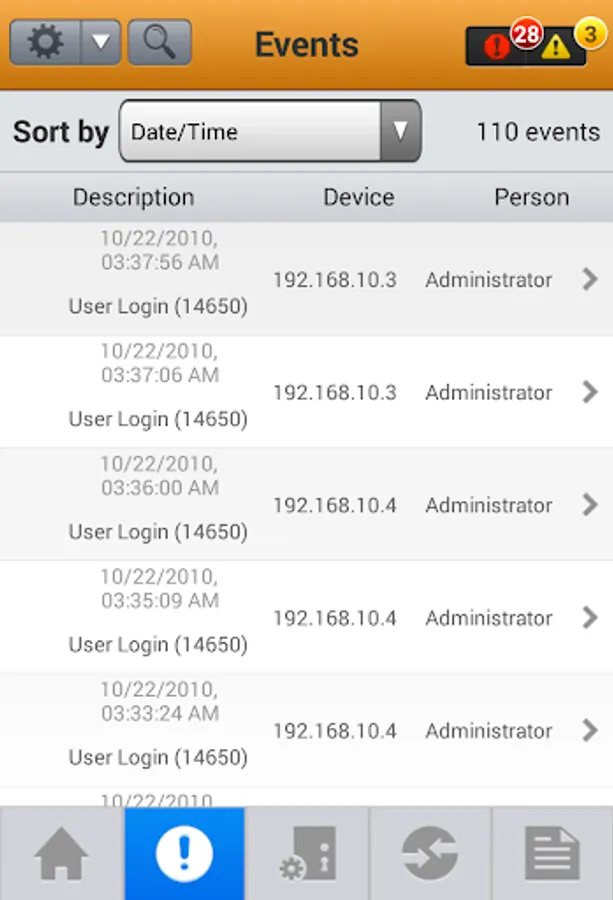 • Monitoring of real-time events and alarms via an intuitive events viewer