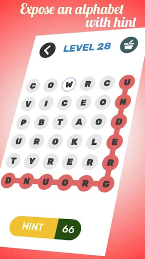 Slide & drag your finger over the alphabets to form a word, do the same until you receive a well-done notification and a new level will appear automatically.