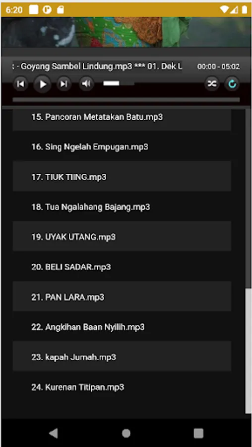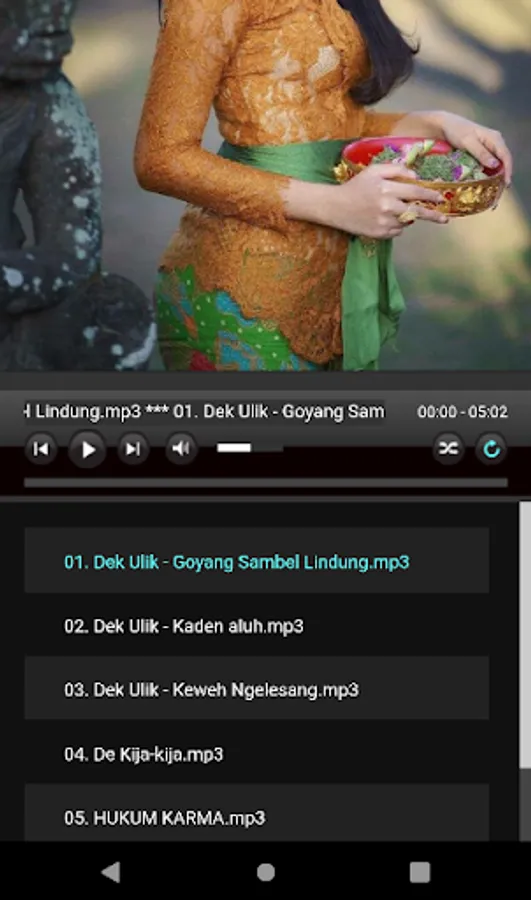 The Lagi bali application. Amazing choices, so well-shared and interesting, easy to use and without consuming quota, because offline, a list of songs in between