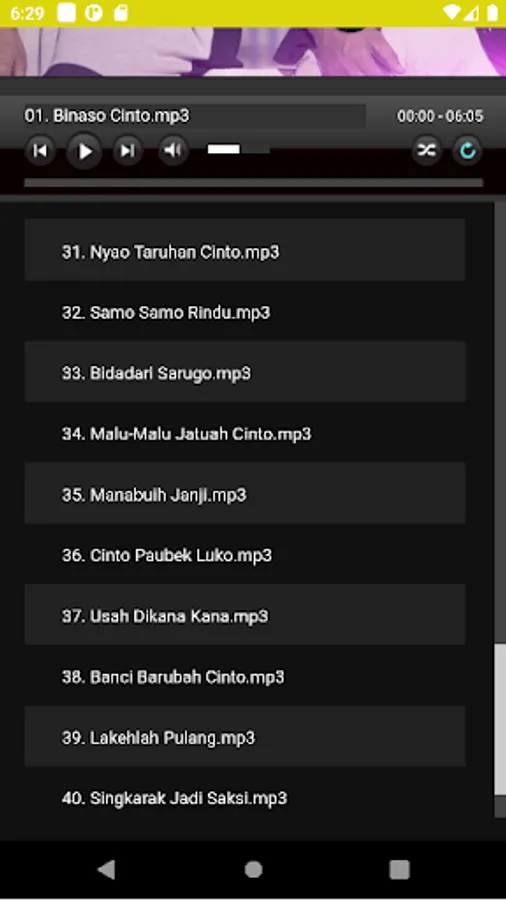 a music player application that contains minangh charts, with excellent audio quality so you are comfortable to listen to while relaxing or working or when you are active. equipped with offline features so you can use it anywhere without a connection