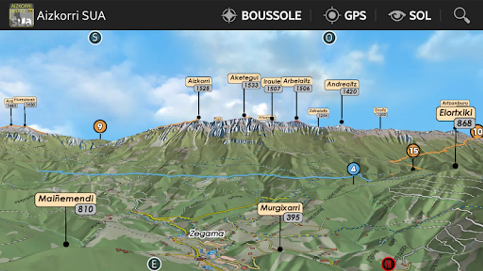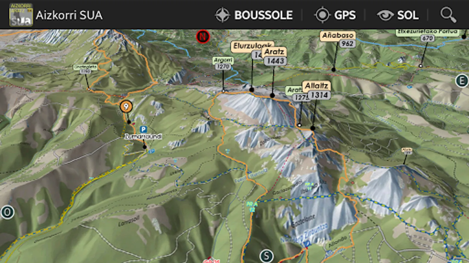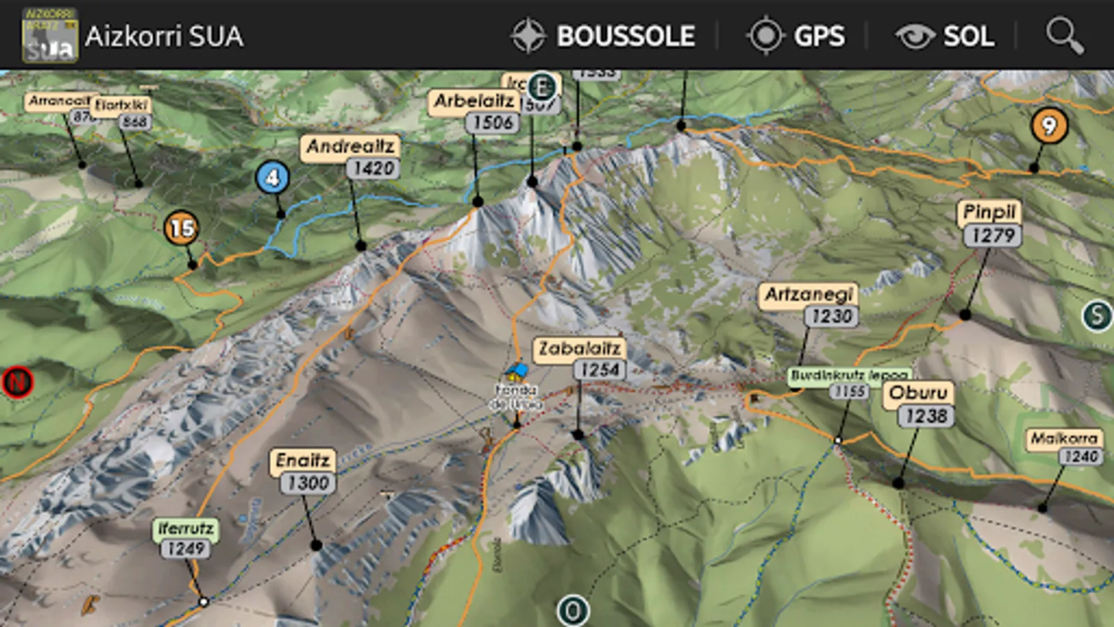 The compass mode is integrated in 3D, the cardinal points are oriented according to the manual movements or map automatically orients the north by activating the compass mode directly from 3D.