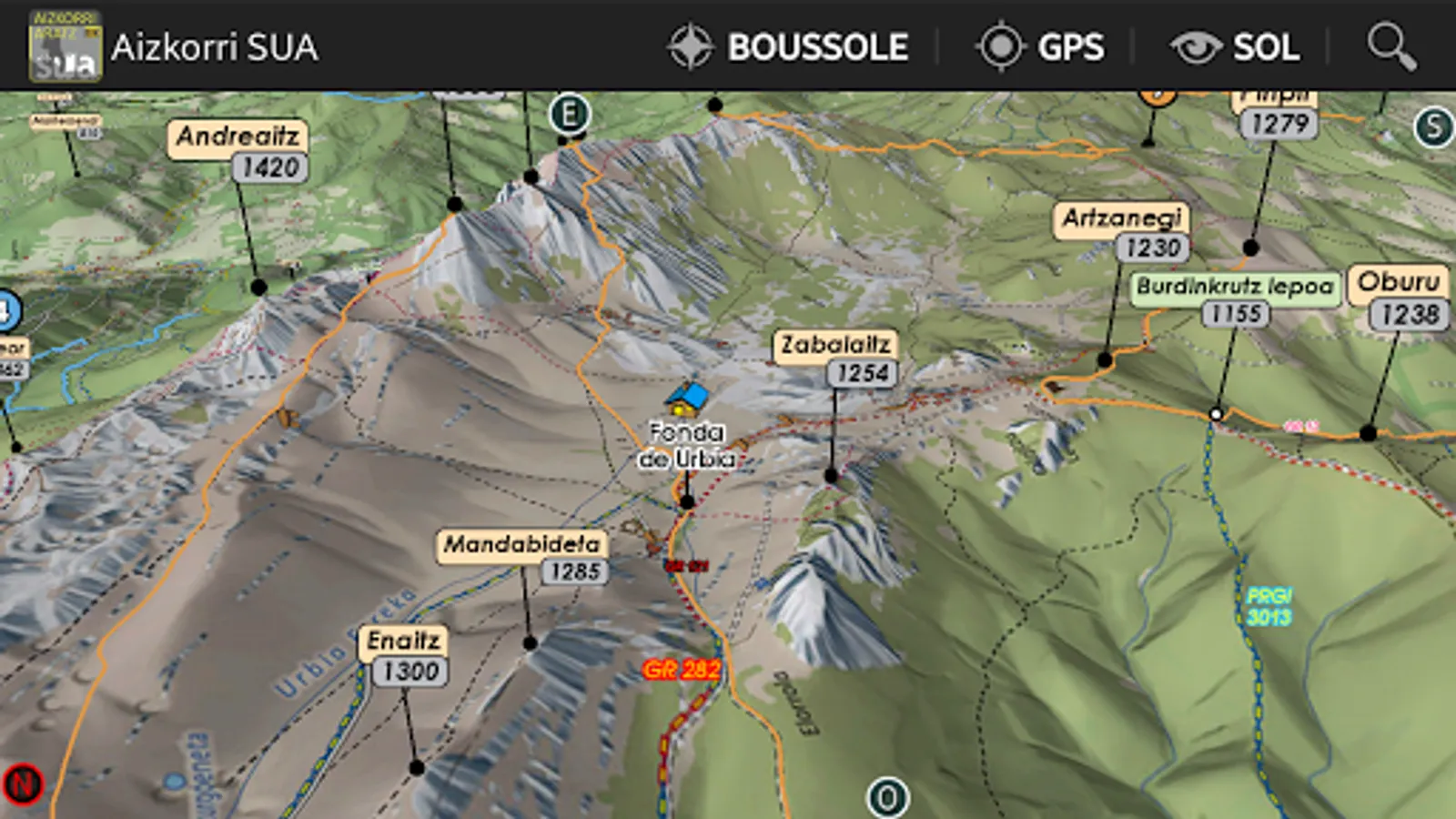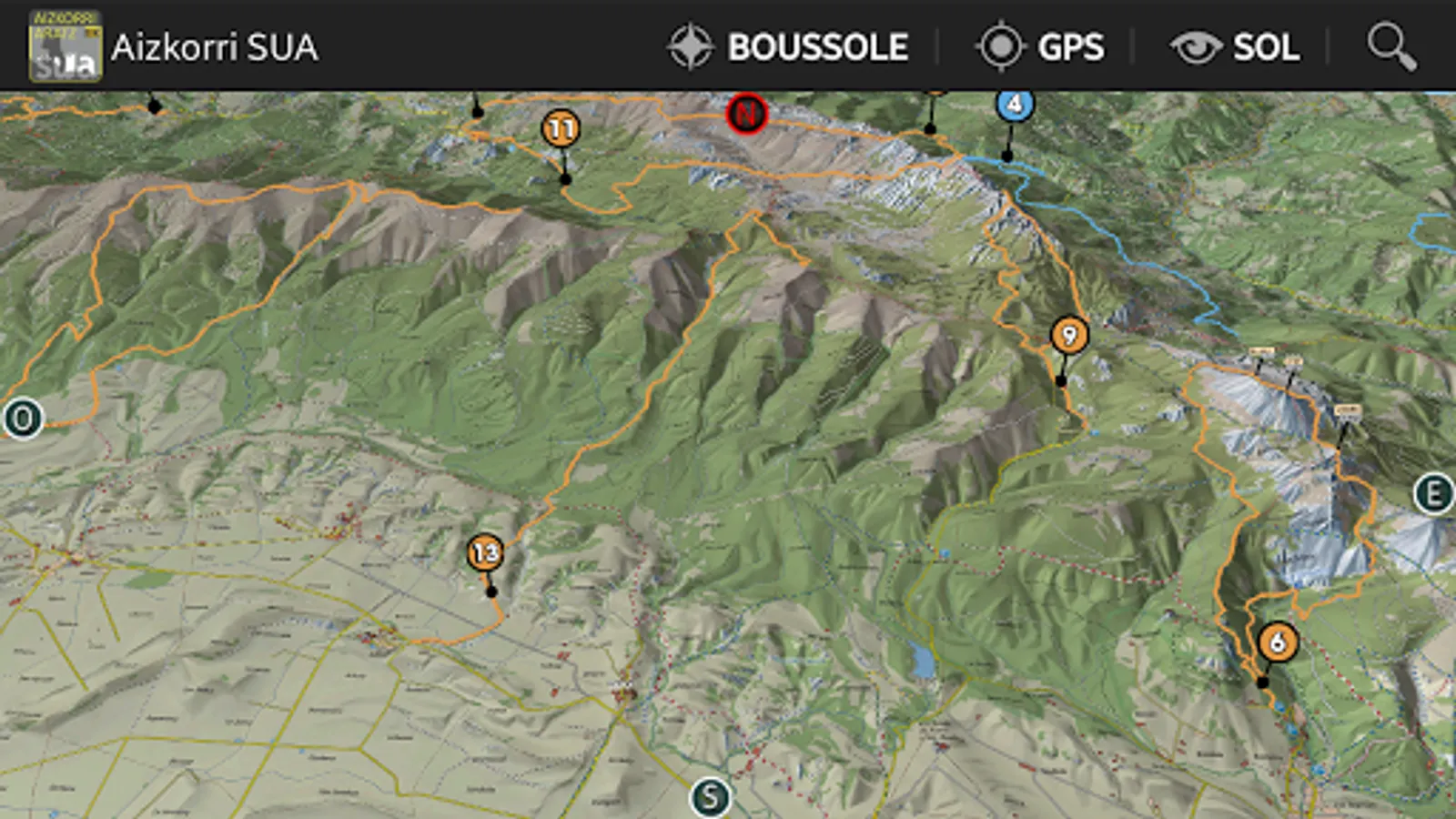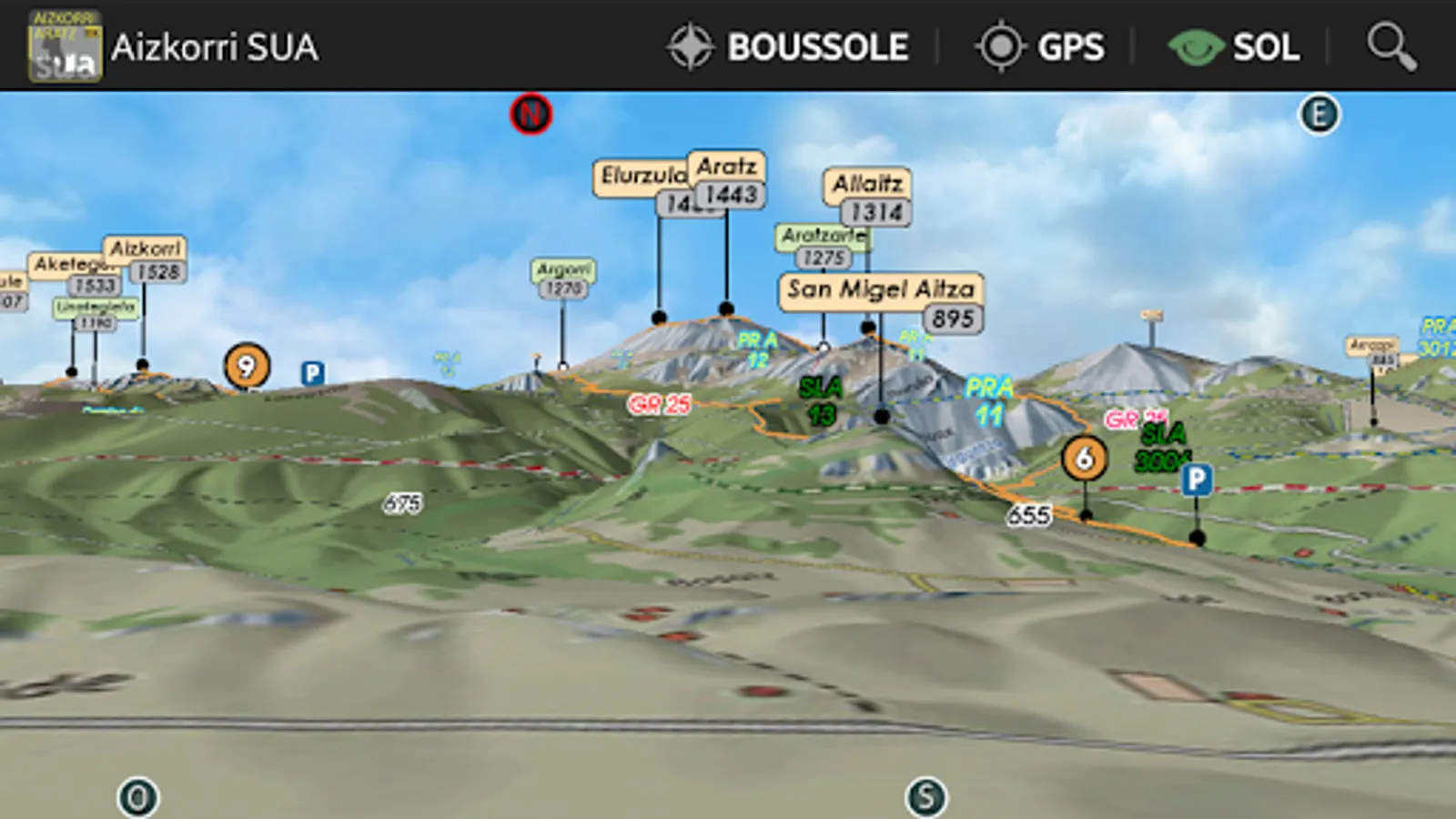The compass mode is integrated in 3D, the cardinal points are oriented according to the manual movements or map automatically orients the north by activating the compass mode directly from 3D.