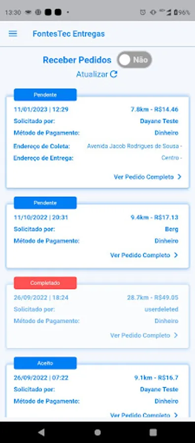 FontesTec Motoboy allows couriers registered on the FontesTec platform to be notified about new orders from partner establishments, accept delivery and be guided by map to the customer's location.