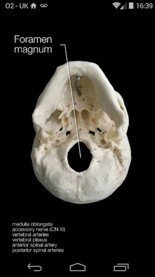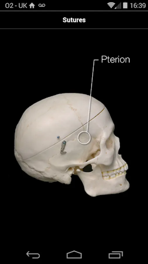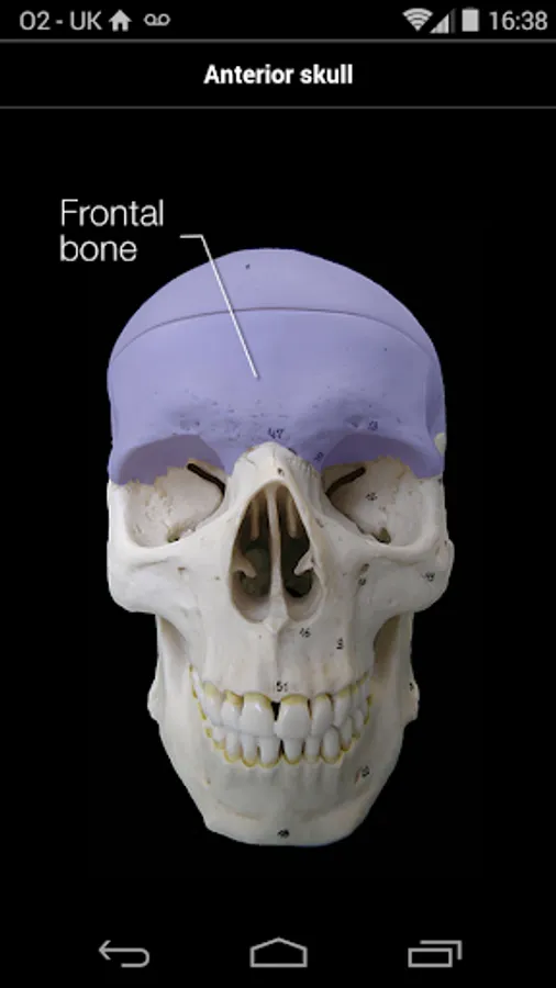 Photographs of bones, sutures and foramina of the skull with touch labelling. Bones are interactively coloured and labelled, sutures are named, and foramina labels include lists of structures that pass through them. This app is aimed at students studying anatomy, including medical students, and should help students learn and revise the bony features of the skull.
