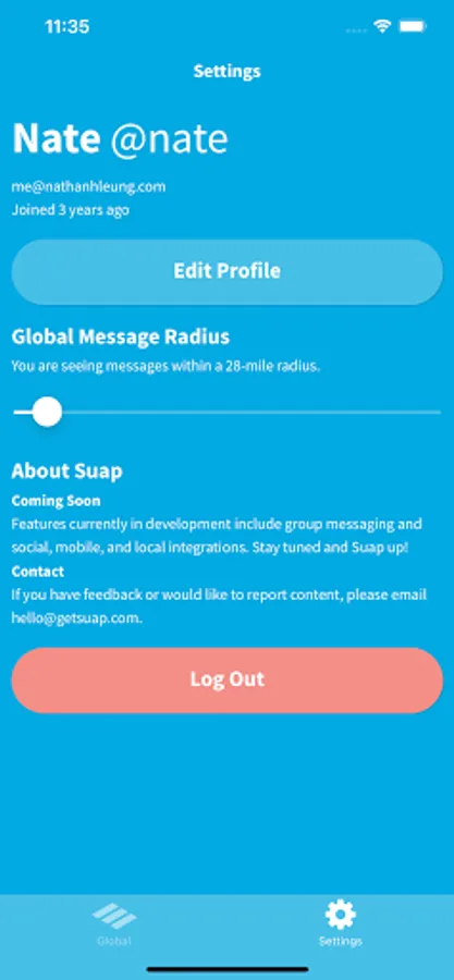 Suap is a location-based social messaging app. Think Reddit, but in a five-mile radius.