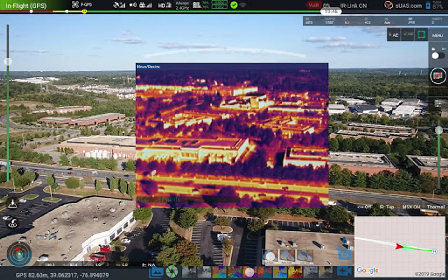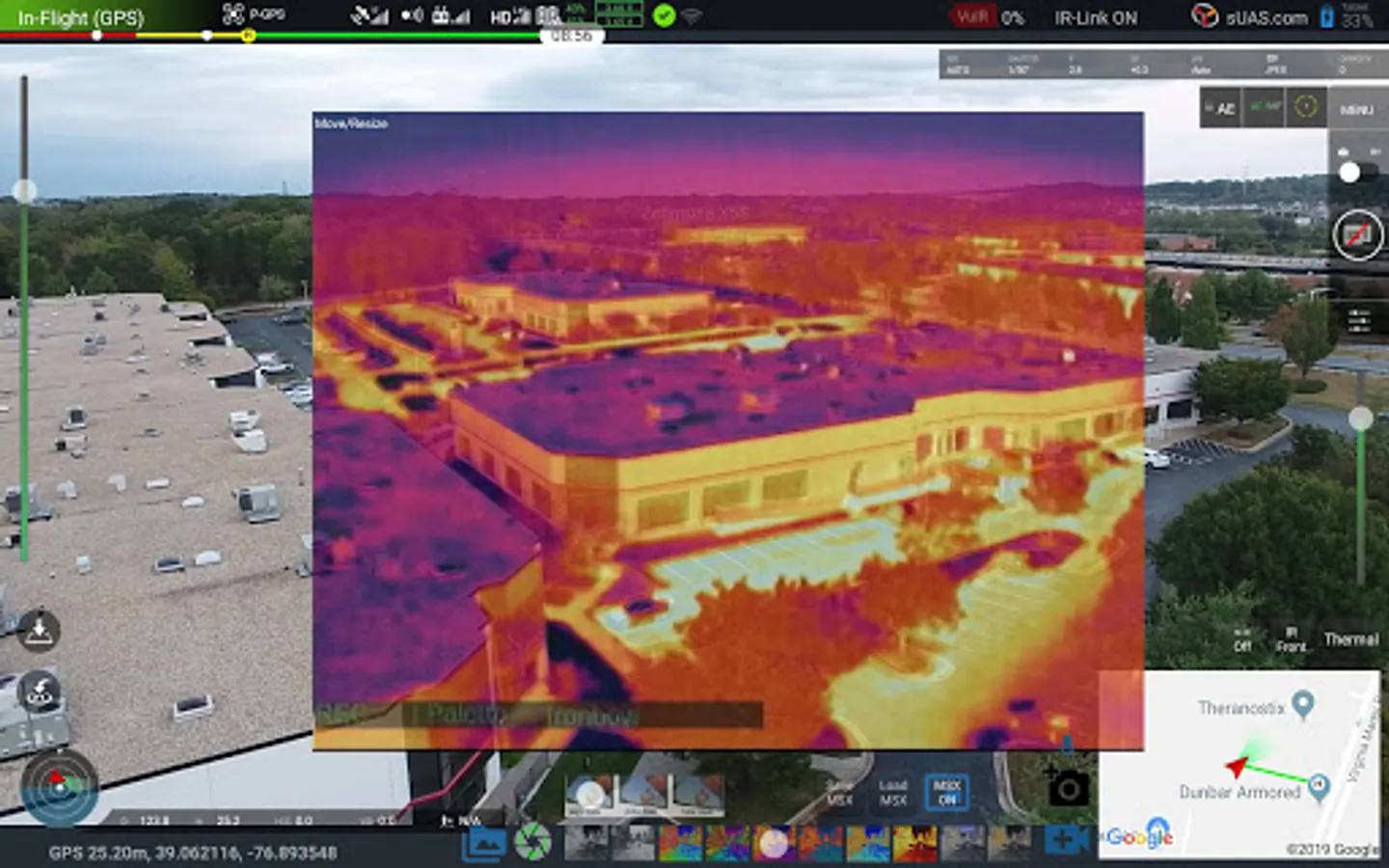 The Thermal vision widow can be resized, moved, set transparency in real time super conveniently with your fingers. More than that, you can have a quasi-MSX effect by overlaying IR vision on top or behind DJI daylight vision with exact same size (field of view). This can make the thermal vision much clearer and creates an stunning effect that is not seen anywhere else, even the Zenmuse XT2 or FLIR Duo Pro R.