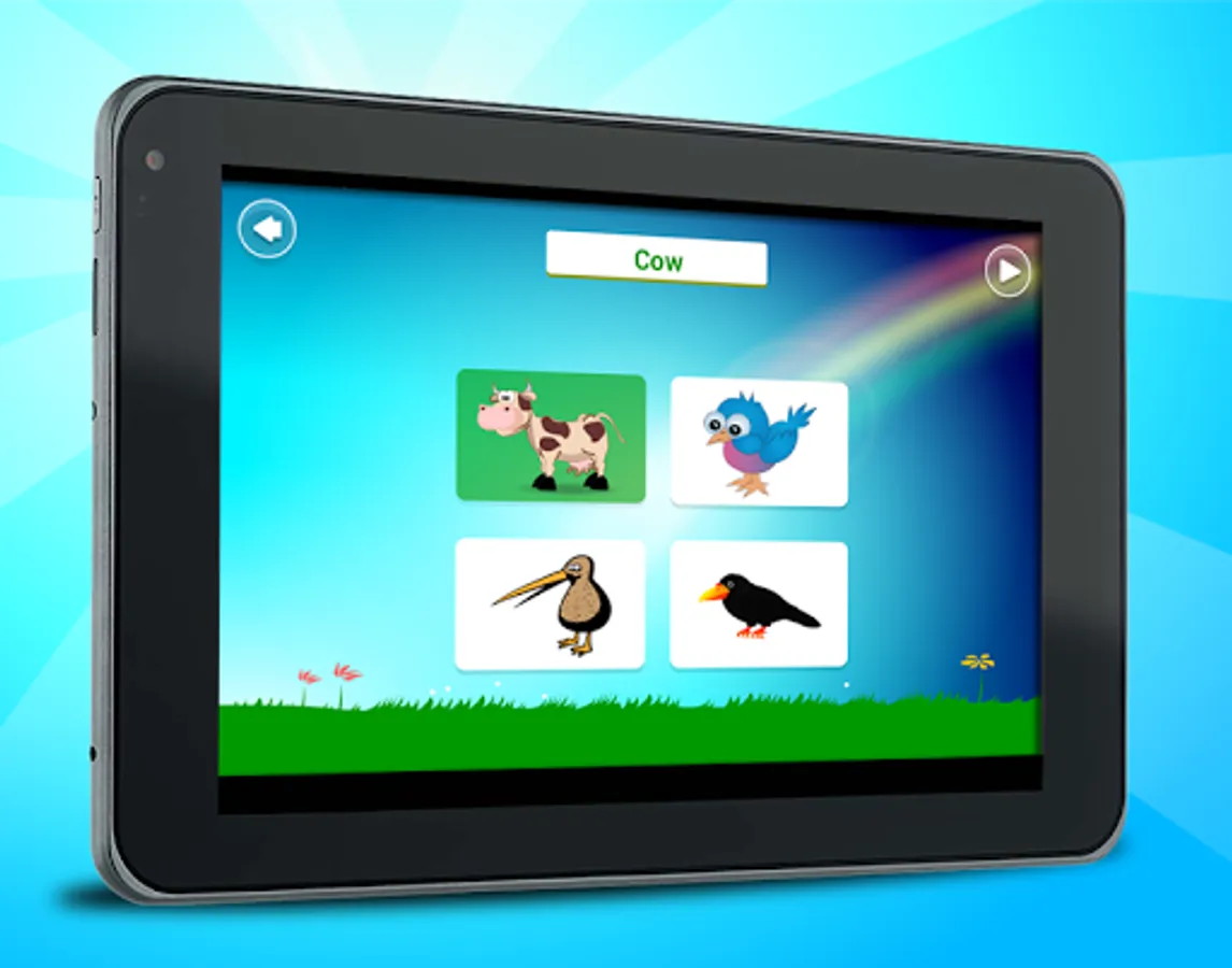 The app contains fun graphics which are both memorable and colorful. There are different pictures linked to each item with vocals to even register sounds and pronunciation into the listener’s mind of word.