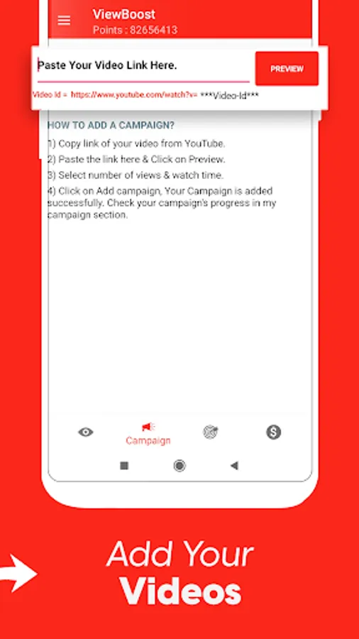 - - Start your campaign by entering the video id in Campaign section.