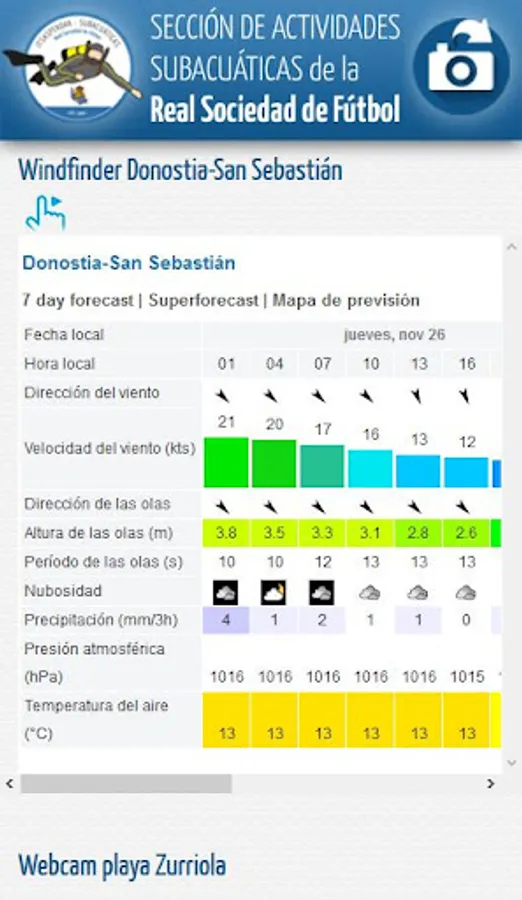 Check the status of the sea comfortably and easily, thanks to the information available on the website of Underwater Section of the Royal Society of Soccer.