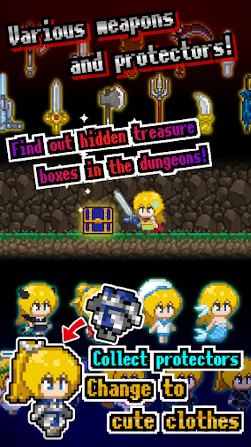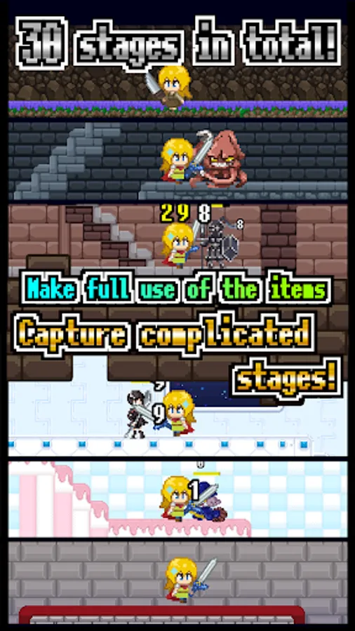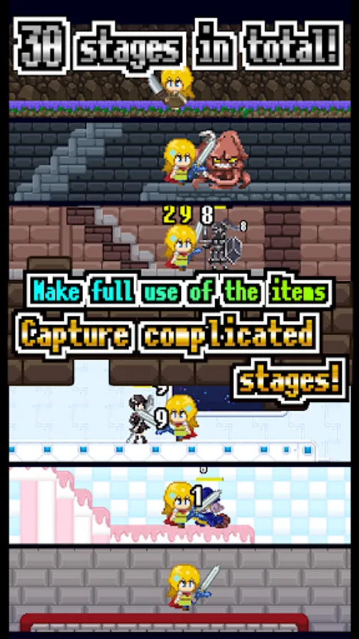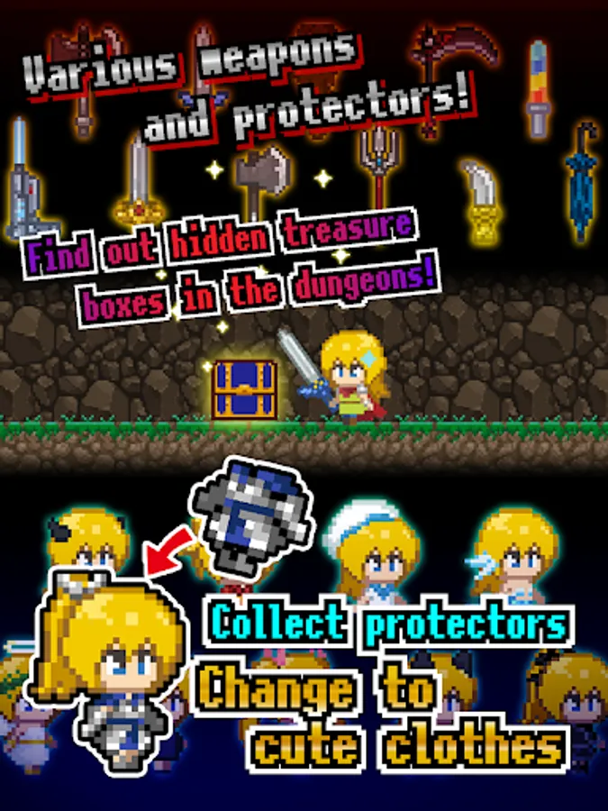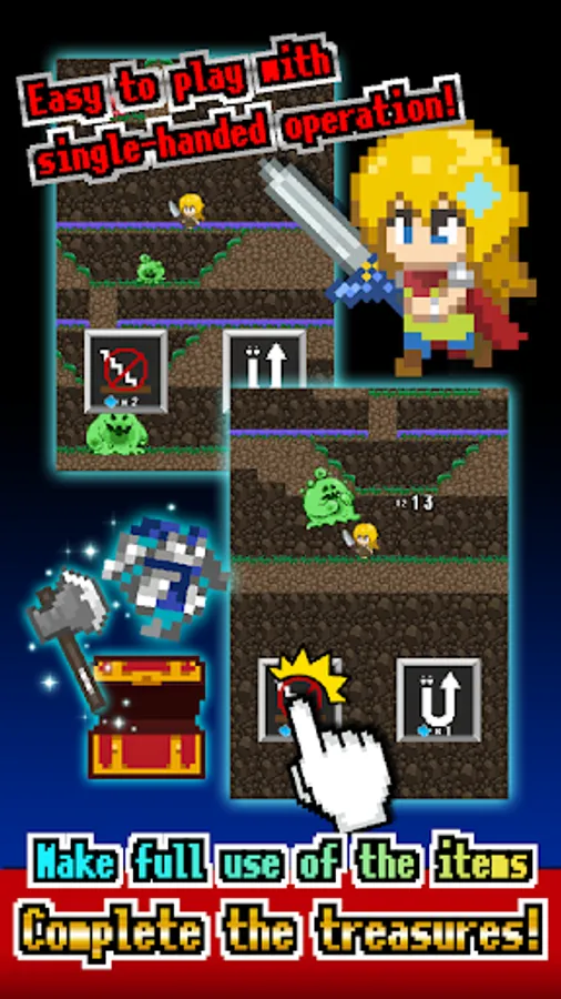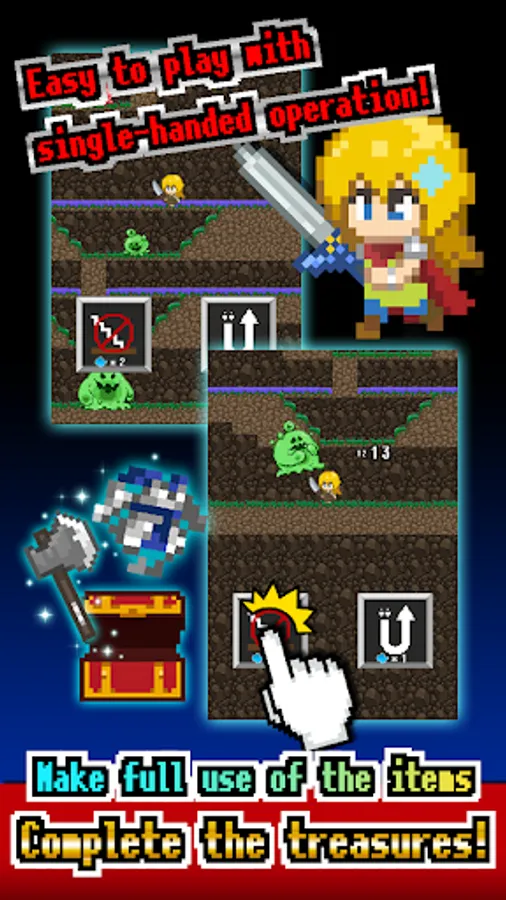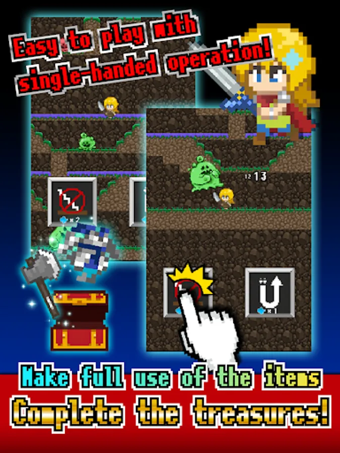 Characters start running toward a goal without any complicated operation. All you need is to direct them by tapping and help them explore the dungeon!