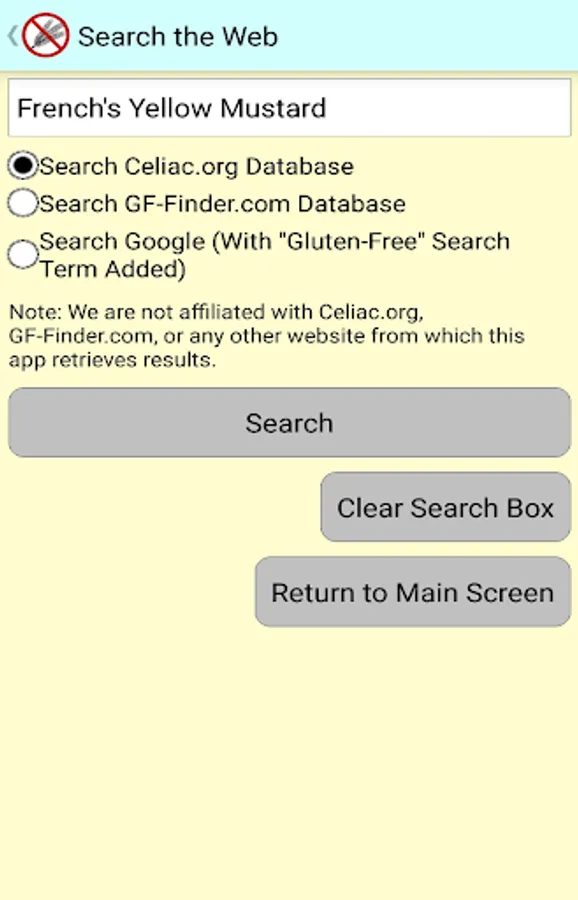 Note: We are not affiliated with Celiac.org, GF-Finder.com, or any other website from which this app retrieves results. If you find that any information on one of these sites is inaccurate, we suggest that you report it to those who have made that information available. We will also report any inaccurate information on these sites to those who run them if we find any inaccurate information on them.