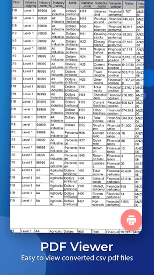 CSV file reader is not only used to view csv file content but can also be used as csv to pdf converter, you can convert any csv file to pdf easily, in case of very large file you can convert csv to pdf up to certain limit. CSV viewer has its own pdf viewer through which you can easily view any converted pdf files. You can print both csv and pdf file easily through csv to pdf converter app.