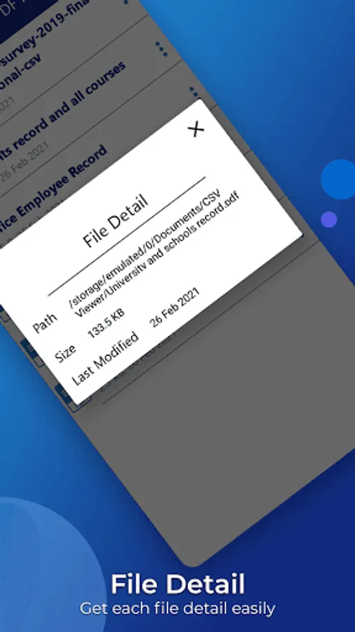 CSV file viewer will allow to copy any cell data, whole row and column data easily. Through csv viewer you can easily view your recently visited file and open it easily.