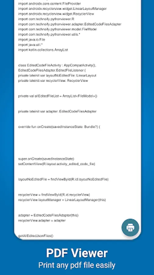 Kotlin file opener is a powerful Kotlin file viewer. Provide a full solution to open Kotlin files and PDF files on the go. Support to display, print, share PDF files with friends and colleagues. If you are looking for reading PDF files on your mobile, then this is the best app for you.