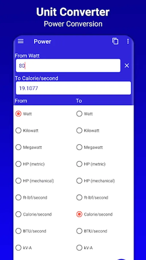 3. Daily used units like Temperature, Area, Length, Mass/Weight, Cooking, Power, Energy, Fuel consumption, Digital storage and many mores…